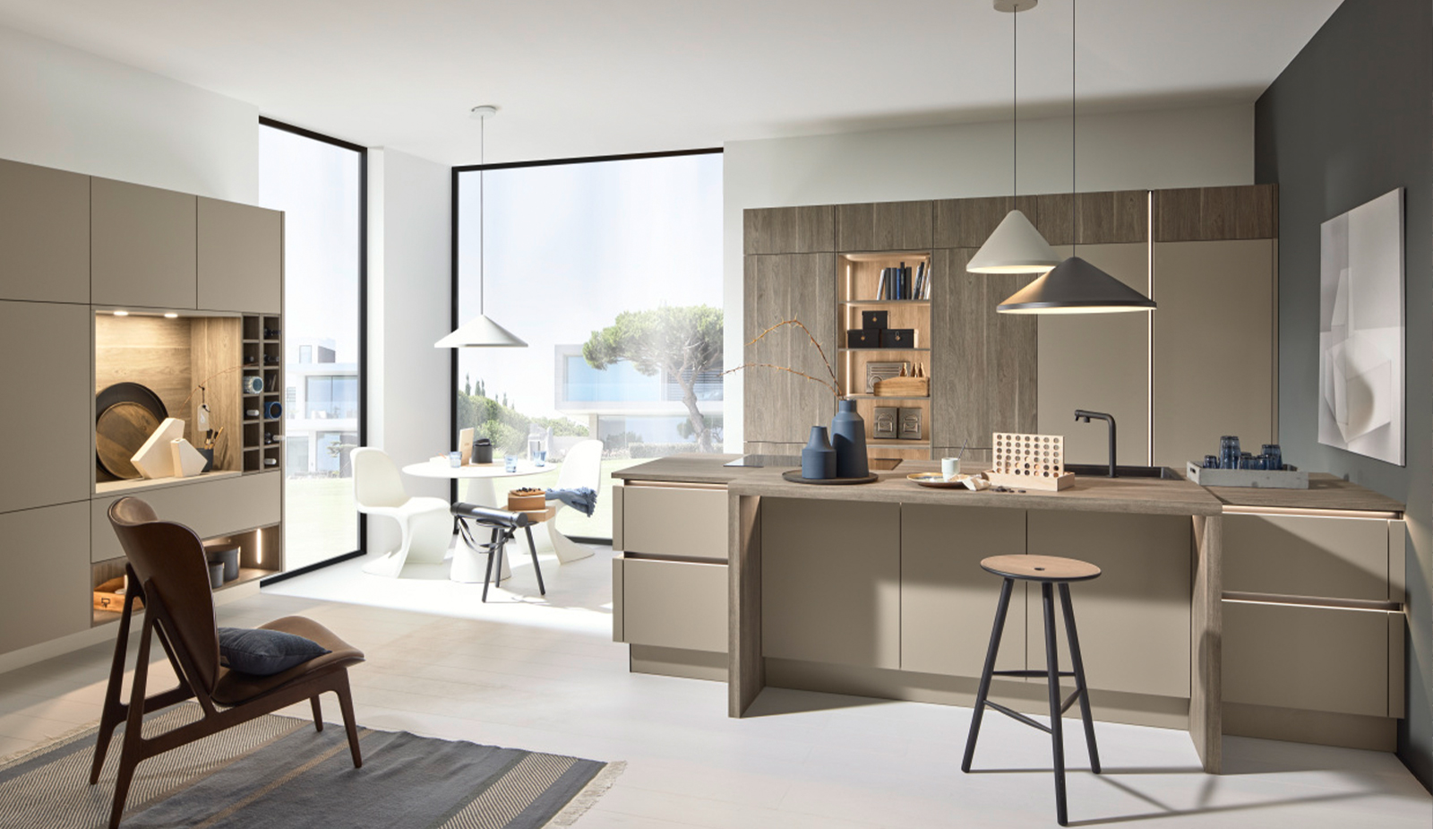 Explore the latest kitchen trends with Nolte, featuring a range of materials like wooden fronts and real stone, alongside new matt lacquer colors. Choose from various durable and stylish kitchen worktops and backsplashes, including cost-effective laminates and luxurious ceramics. Upgrade your kitchen with high-performance Bosch appliances for a seamless cooking experience. Select practical and aesthetic flooring and wall tiles to complement your space and enhance durability. Finally, design a dynamic lighting scheme with ambient, task, and accent lighting to illuminate your kitchen beautifully.